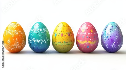 Colorful easter eggs displayed on white background for festive decoration and celebration