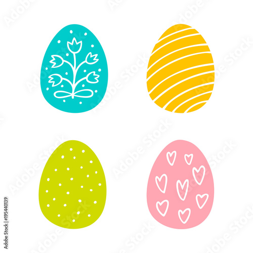 Colorful Easter eggs hand drawn icon set in doodle style