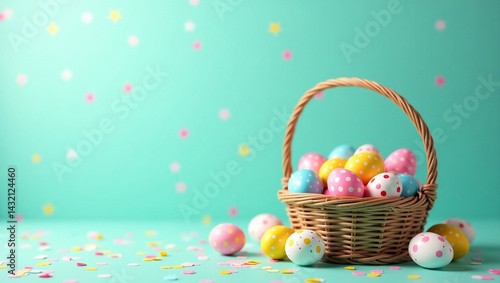Colorful Easter Eggs on a Blue Background with Floral Patterns