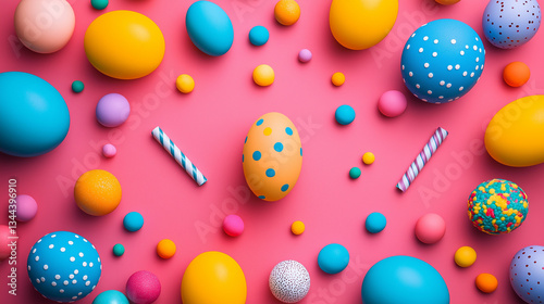 Colorful Easter Eggs Pink Background Festive Candy Decor