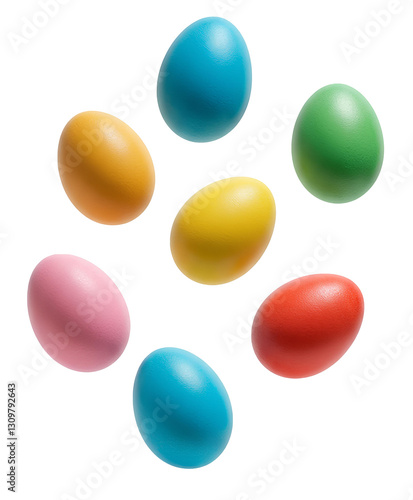 colorful easter eggs PNG. solid coloured easter eggs falling down isolated. happy easter eggs png. festive and vibrant design for Easter promotions. easter egg top view flat lay isolated