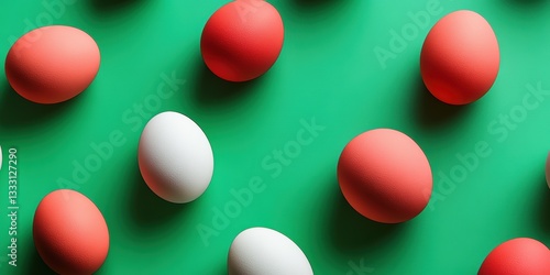 Colorful eggs lined up neatly on a vibrant green background for Easter celebrations.
