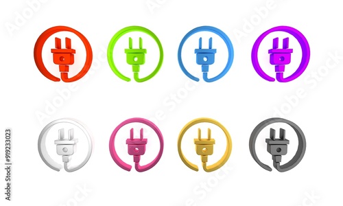 Colorful Electric plug icon isolated on white background. Concept of connection and disconnection of the electricity. Minimalism concept. 3D render illustration