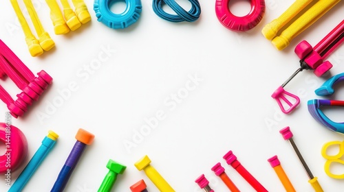 Colorful Exercise Equipment and Accessories for Fitness and Workout in Circular Arrangement