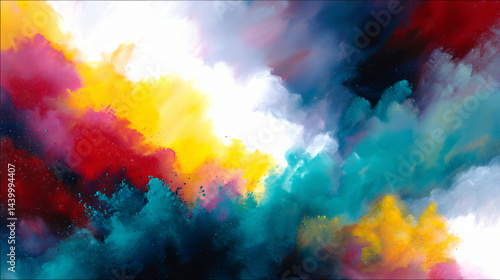 Colorful explosion of vibrant hues merging in a dreamy, cloud-like burst against a white backdrop