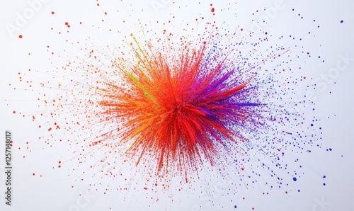 Colorful explosion, vibrant particles, white background, dynamic energy, design element