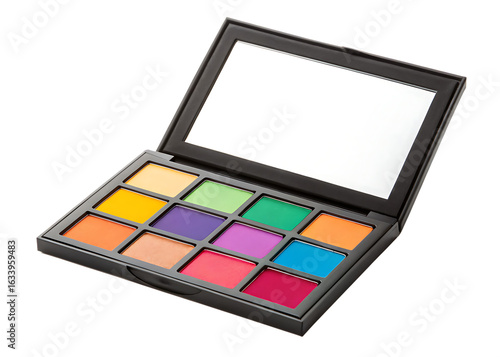 Colorful eyeshadow palette with mirror isolated on a transparent background makeup cosmetic