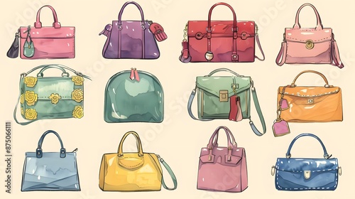 Colorful fashion collection lady woman bags sale at bag store shop.