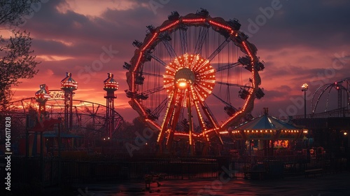 Colorful Ferris Wheel at Dusk in Amusement Park