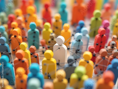 Colorful figures connected by lines illustrating social media networks and interactions, wallpaper, background