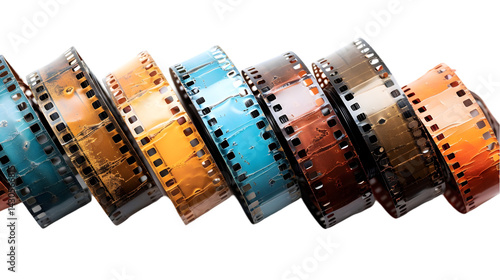Colorful Film Reels Stacked Closeup.