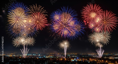 Colorful fireworks against a dark sky, celebrating a special occasion.