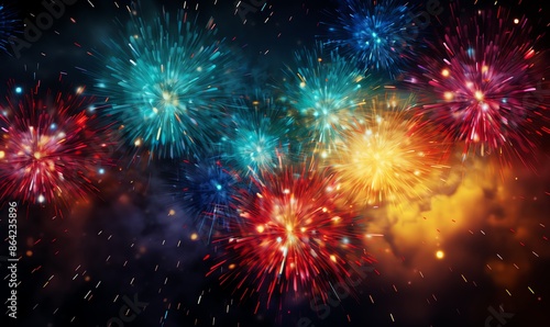 Colorful Fireworks Display Against a Night Sky