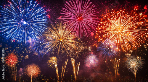 Colorful Fireworks Display Against Night Sky