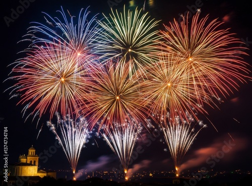 Colorful Fireworks Display Over Cityscape for Festive Celebrations