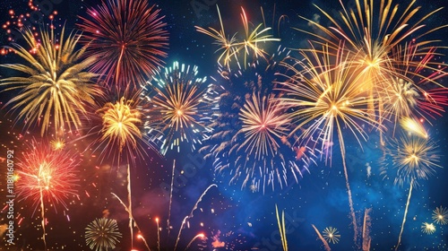 Colorful Fireworks Exploding in the Night Sky for Celebration, Generative AI