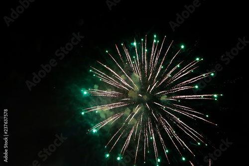 Colorful fireworks over dark sky, New Year celebration fireworks