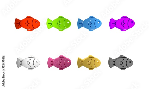 Colorful Fish icon isolated on white background. Minimalism concept. 3D render illustration