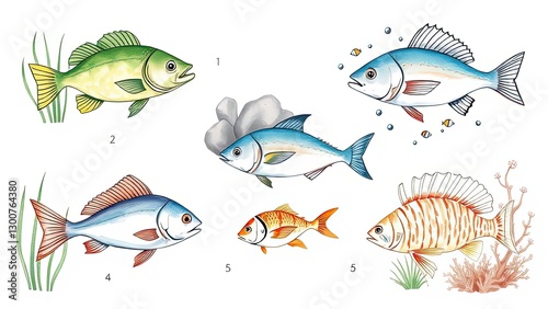 Colorful Fish Illustrations Aquatic Life Marine Animals Underwater World