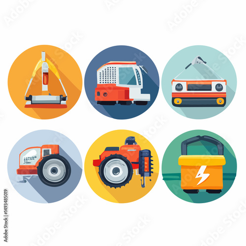 Colorful Flat Icons of Agricultural and Industrial Machinery