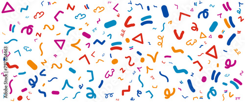 Colorful flat shapes abstract fun line doodle banner with cute simple style. Vector illustration for banner, background, pattern, brochure, cover, template, decoration, ads, prints, branding design
