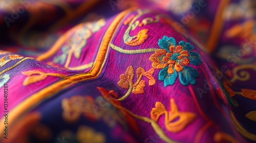 Colorful Floral Embroidery on Rich Fabric with Intricate Design