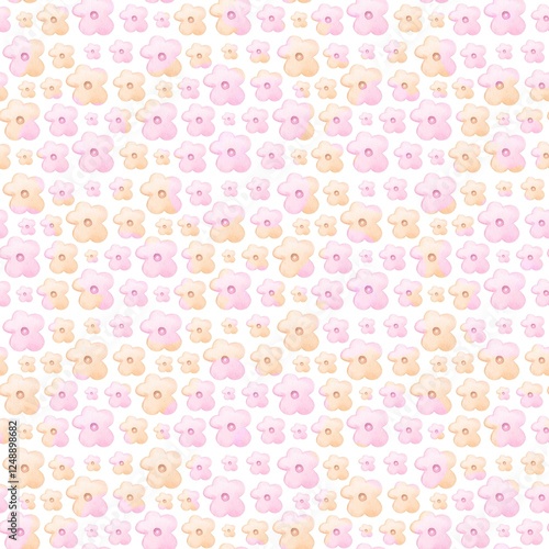 Colorful floral pattern featuring soft pink and yellow flowers on a white background ideal for textile design and crafts