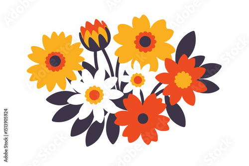 Colorful Flower Bouquet Illustration - Cheerful Floral Arrangement with Yellow, Orange and White Blooms - Modern Botanical Art for Spring and Summer Designs