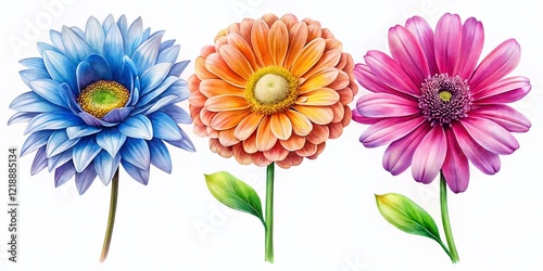 Colorful Flowers Aerial Photography, White Background, Artistic, AI Art
