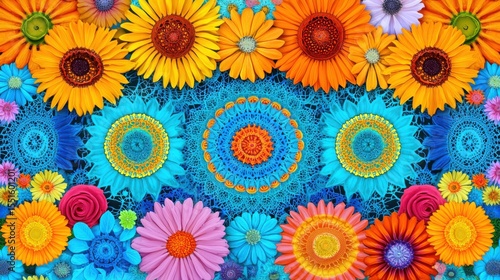 Colorful flowers and abstract fractal background design for digital wallpapers and brochures