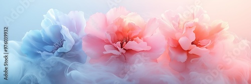 Colorful flowers in pastel colors, with pink and blue petals