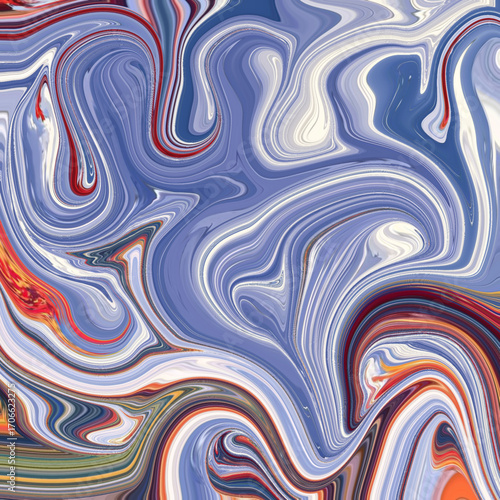 Colorful fluid abstract artwork with swirling blue, red, and white tones, resembling liquid marble. Bold and dynamic visual for creative design. Golden keywords: abstract, fluid, swirl, colorful, marb