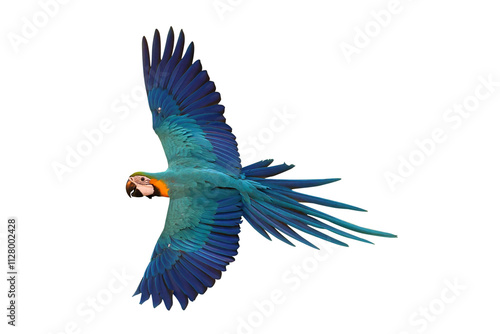 Colorful flying Blue and Gold Macaw parrot isolated on transparent background png file