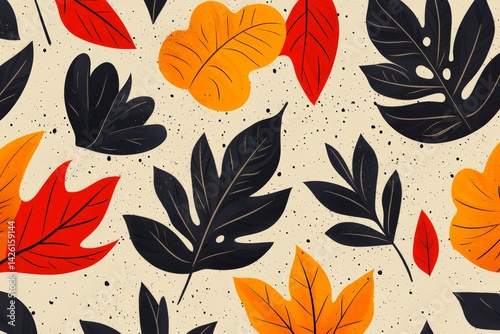 Colorful foliage pattern showcasing autumn leaves in vibrant colors on a cream background