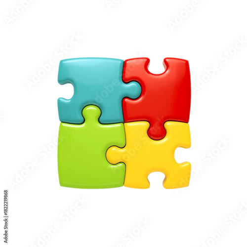 Colorful Four Piece Puzzle Icon Representing Teamwork and Collaboration