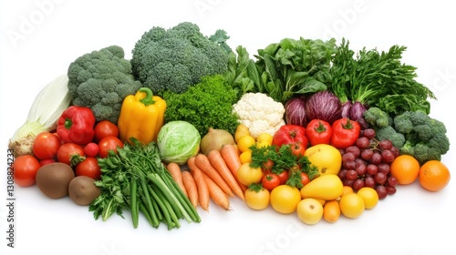 Colorful fresh produce assortment, healthy eating, studio shot, white background, food photography