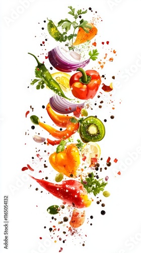 Colorful Fresh Vegetable and Fruit Explosion - A Vibrant Culinary Composition
