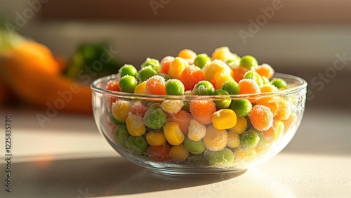 Colorful Frosted Candy Coated Fruit Balls in a Glass Bowl