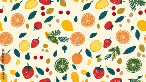 Colorful Fruit and Leaf Pattern on Light Background for Design Use