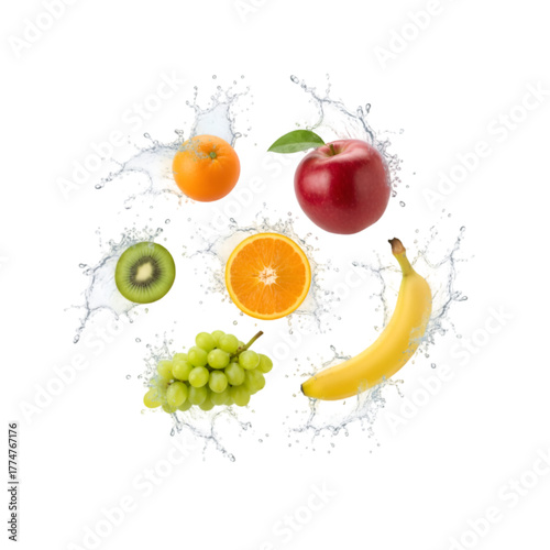 Colorful Fruit Water Splash - Healthy Eating & Nutrition on white background