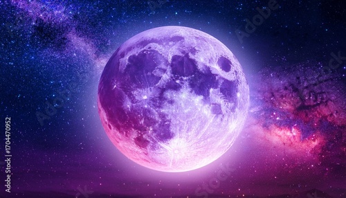 Colorful Full Moon Glowing In Purple And Pink Hues Above Dark Starry Space With Surreal Celestial Atmosphere