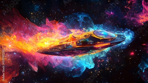 Colorful Futuristic Spaceship Gliding Through Vibrant Cosmic Nebula