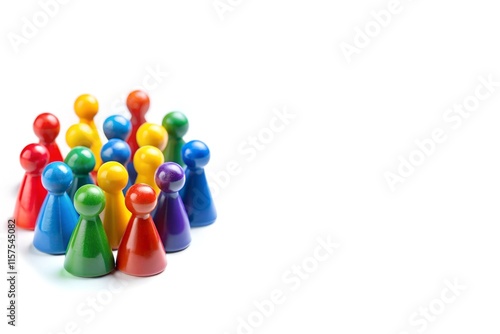 Colorful Game Pawns Close-Up Placed on Left Side of White Background with Copy Space