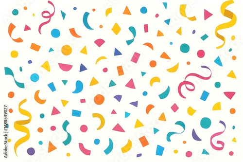 Colorful Geometric Confetti Pattern with Abstract Shapes on White Background – Playful Design for Creative Projects and Celebrations