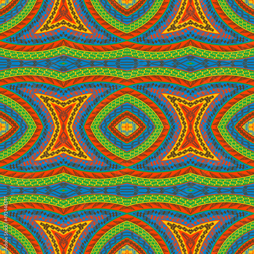 Colorful geometric decorative ethnic motifs seamless pattern