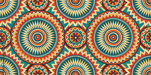 Colorful geometric pattern featuring circular designs, ideal for backgrounds.