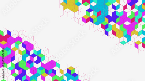 Colorful geometric pattern with cubes and hexagons. Technology background. Vector illustration