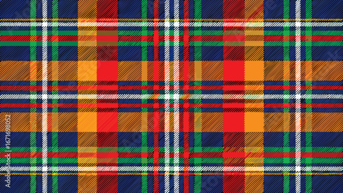Colorful geometric plaid pattern on a seamless textile fabric, perfect as a vibrant checkered backdrop or decorative design