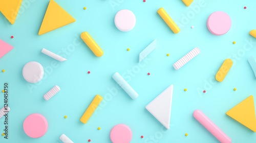 Colorful Geometric Shapes on a Bright Blue Background for Playful and Creative Designs