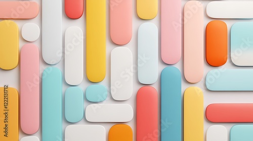 Colorful Geometric Shapes Pattern Created with Soft Pastel Colors and Smooth Rounded Edges for Modern Design